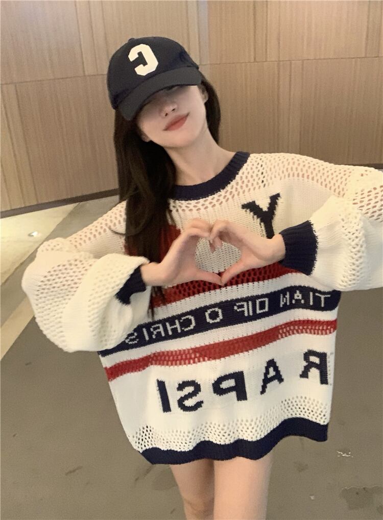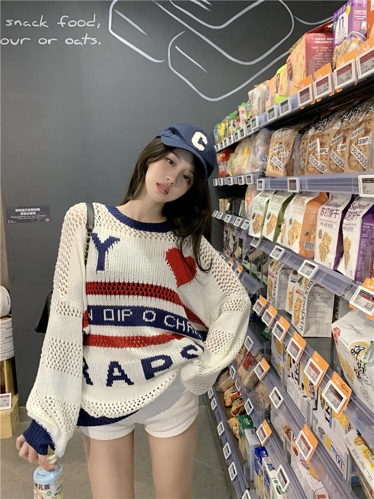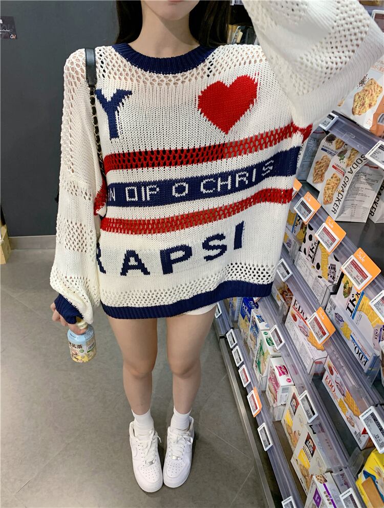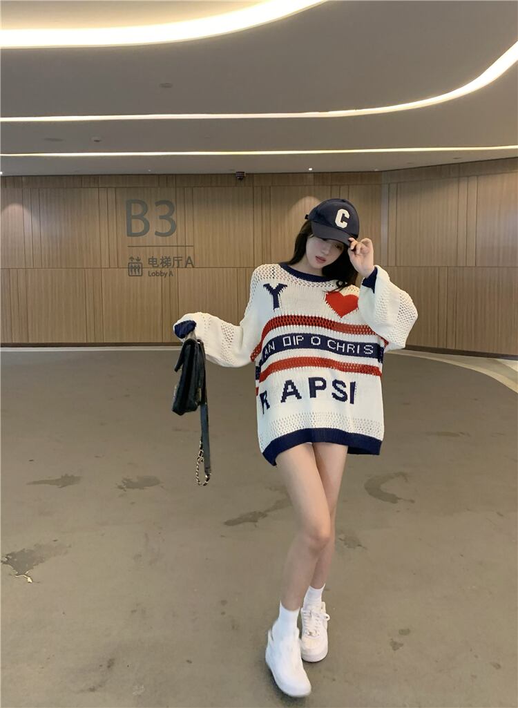 オータムスタイル薄手ニットセーター レディースルーズブラウス トップス ロング 秋物 ハンチェンe90780034703