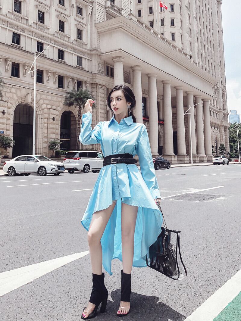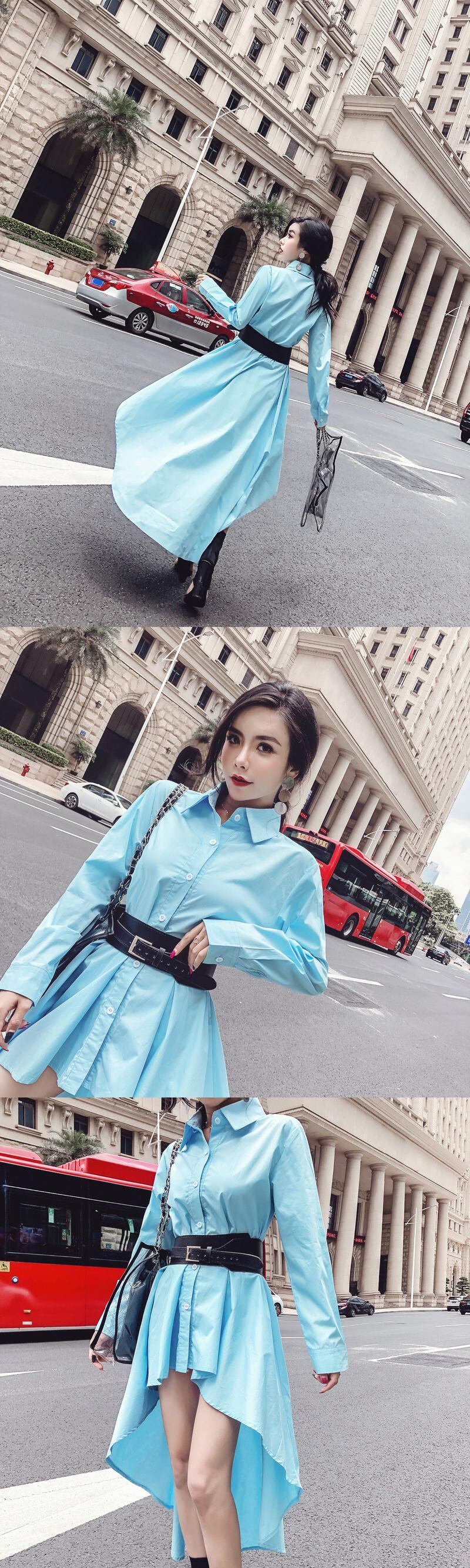 オータムドレス シャツ カラーウェスト薄手レディース ロング 秋物 ハンチェンe3588524754