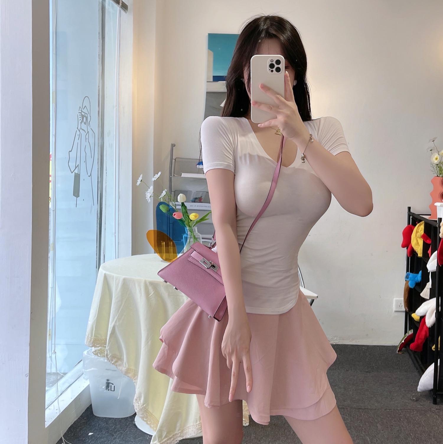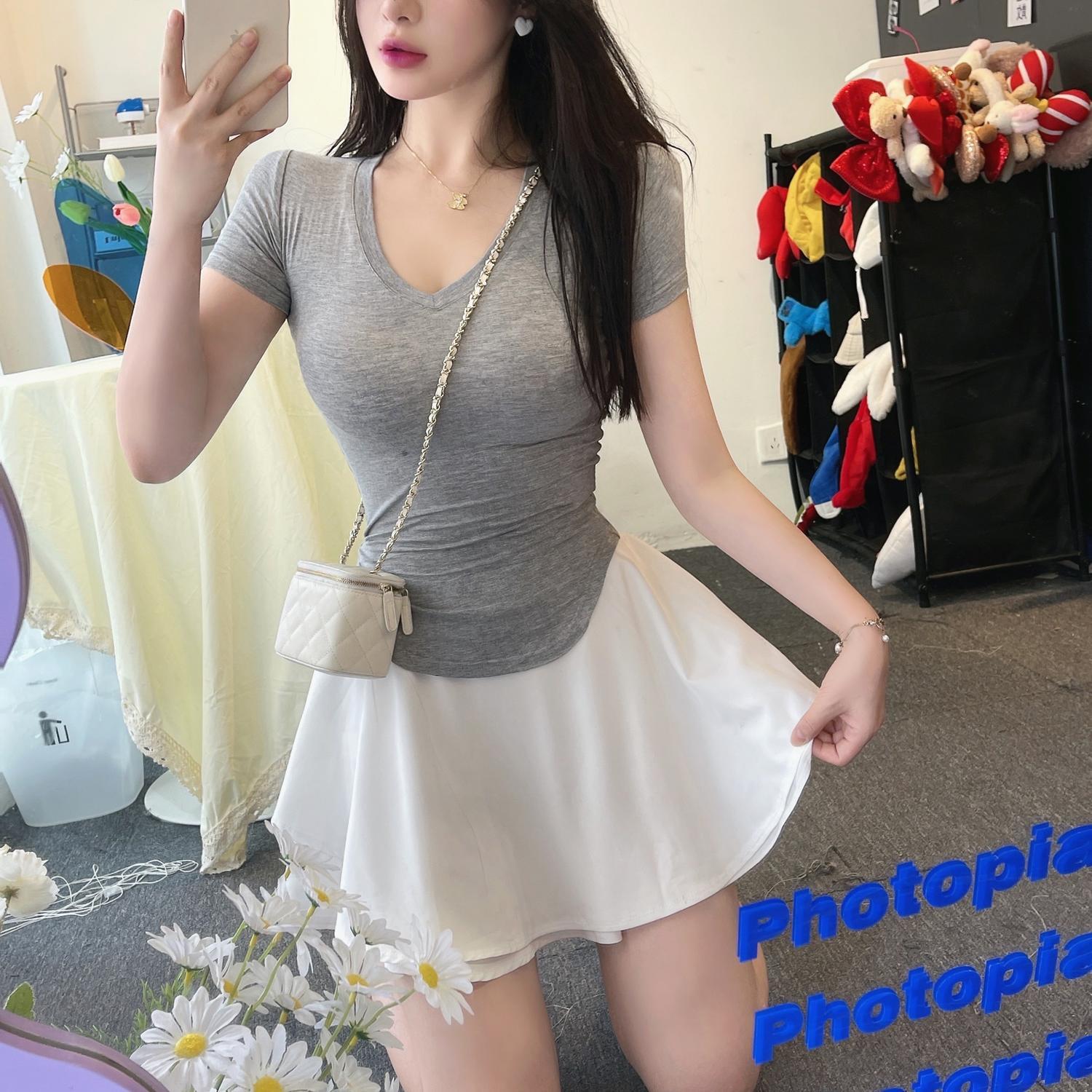 スタイル薄手ウェストTシャツ トップス ハイウェストスカート ハンチェンe68573678184