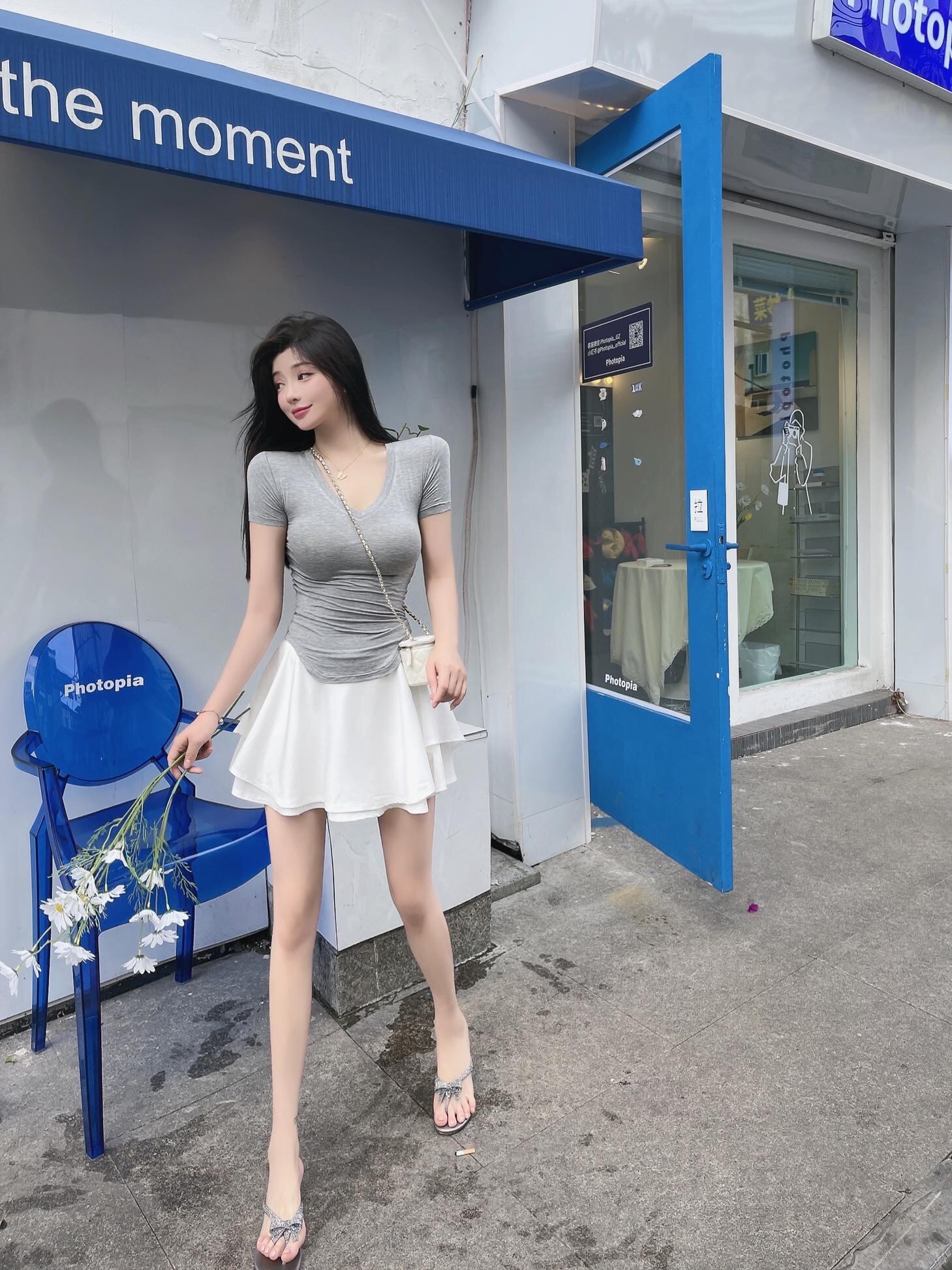 色:ホワイトT,ピンクのスカート,白いスカート,グレーT