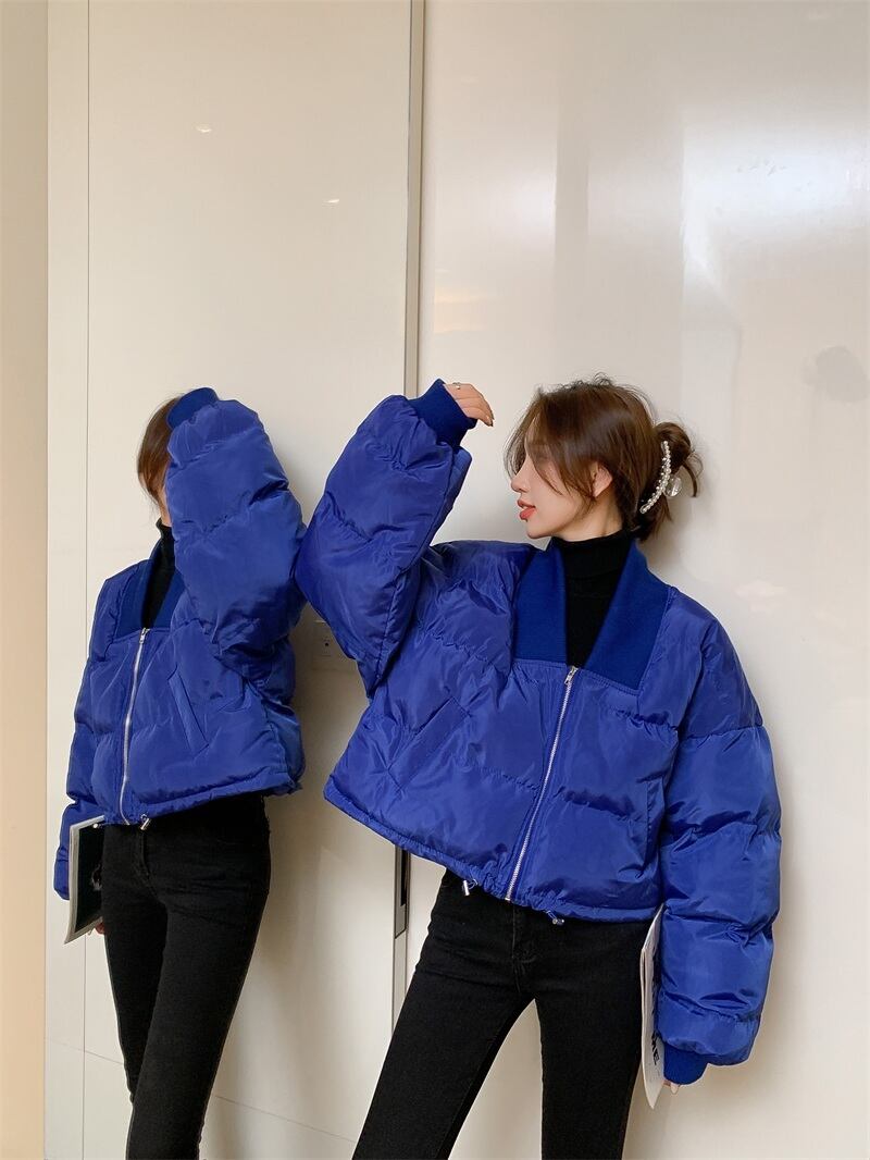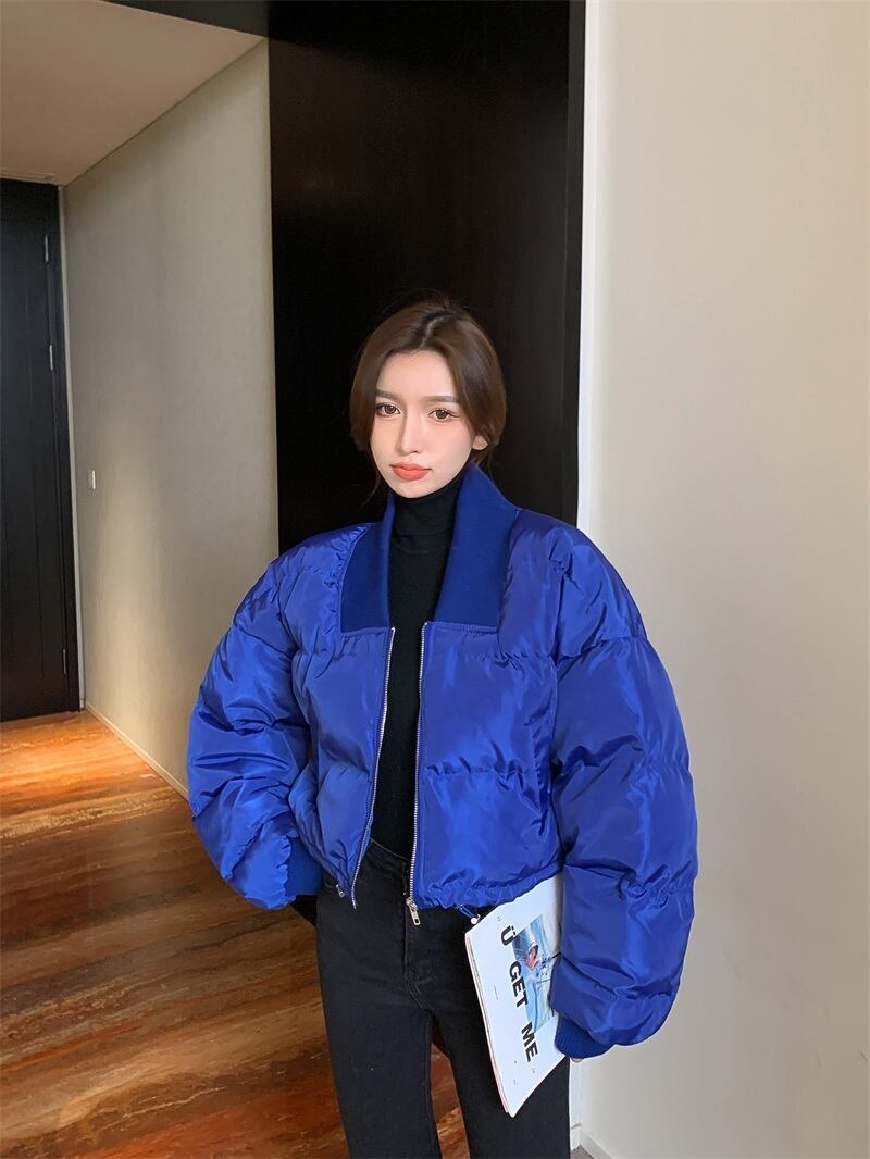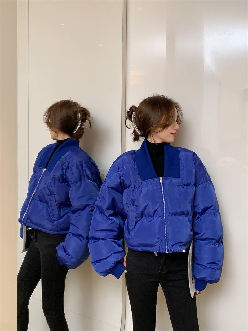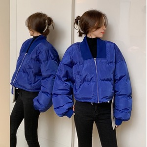 ルーズフードジャケット オータムウィンターレッドショートギャザー コットン 秋物 冬物 ハンチェンe5487154814