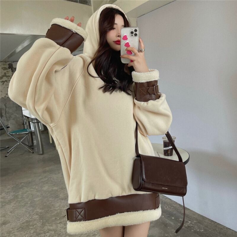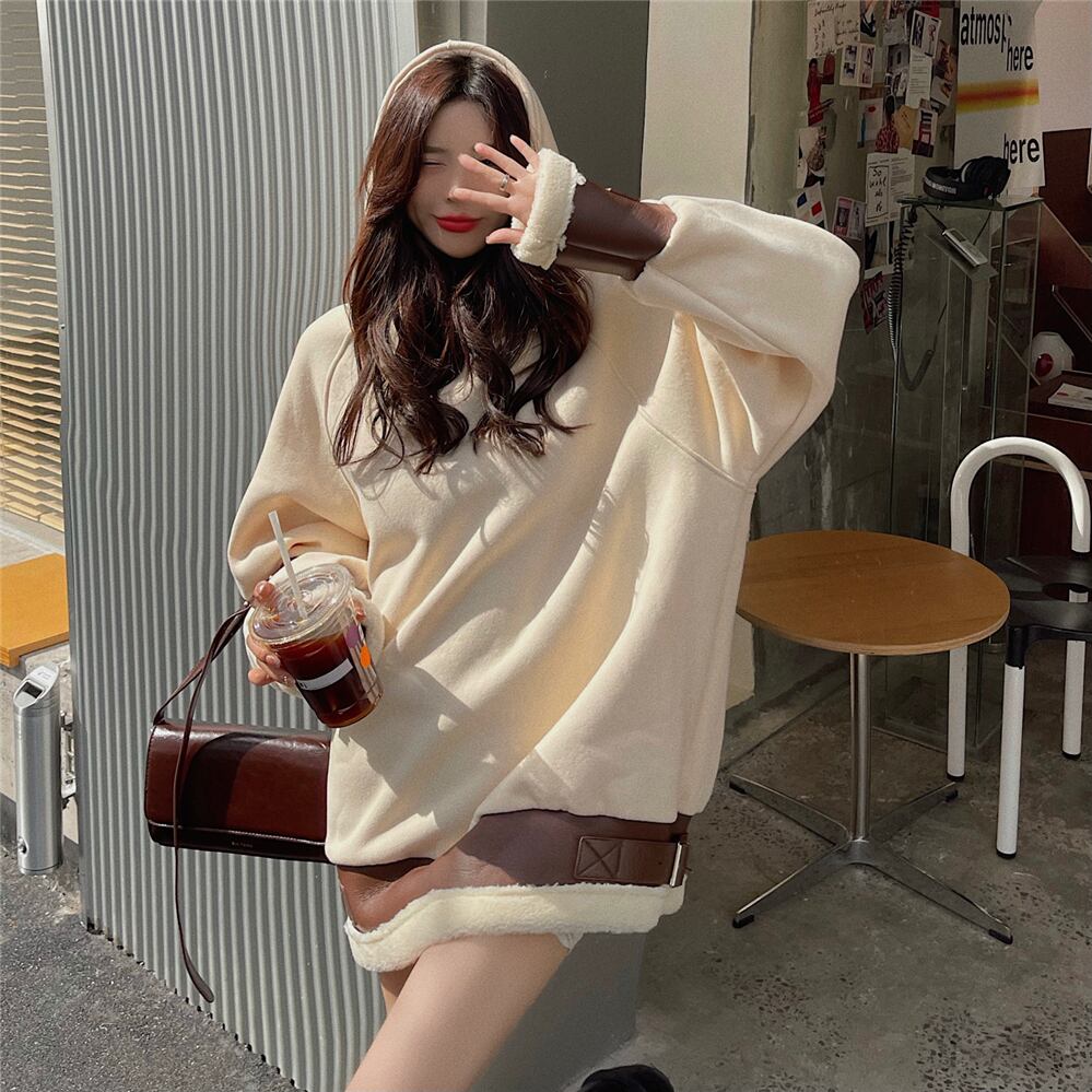 レザーフードベルベットオータムウィンタープルオーバー コート コットン 秋物 冬物 ヨーロピアン ハンチェンe60275678143