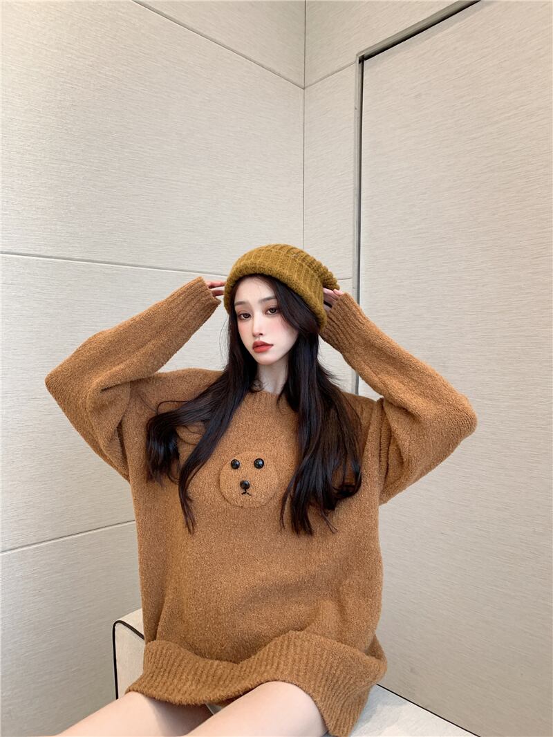 オータムウィンターセーター レディースルーズラウンドネック 秋物 冬物 Oネック ハンチェンe55836315708
