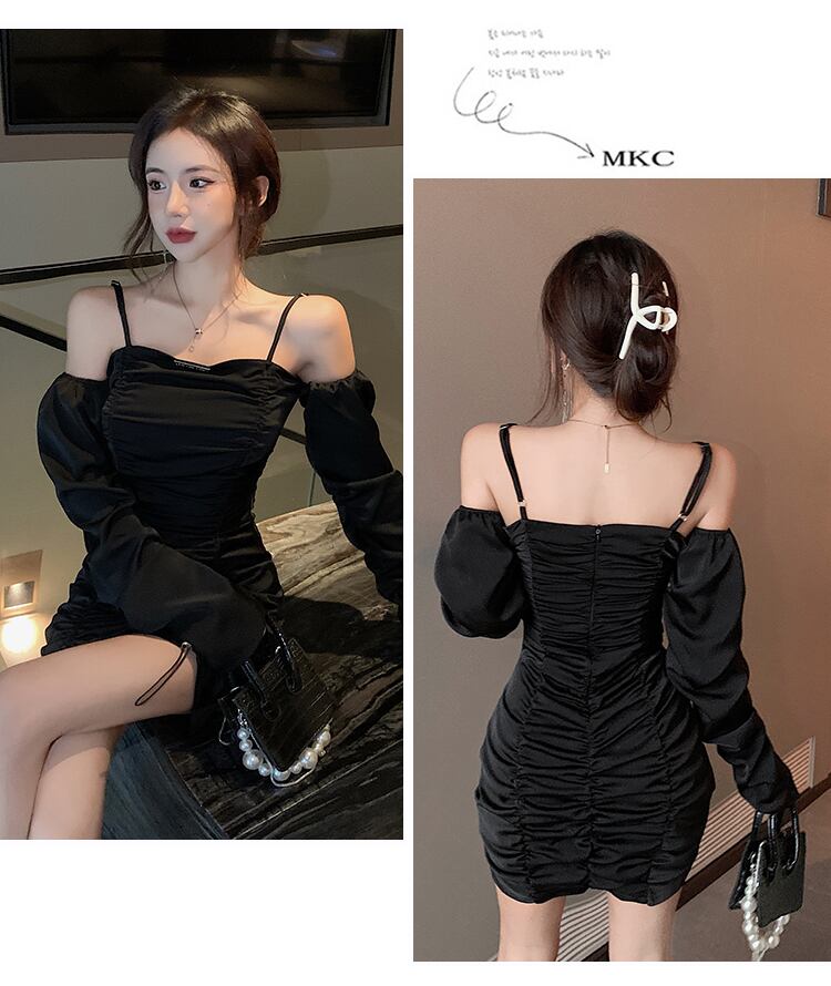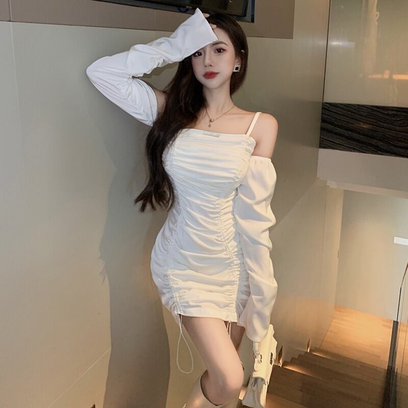 スタイルストラップレスドレス ギャザープリーツスカート ストリート ハンチェンe388949573